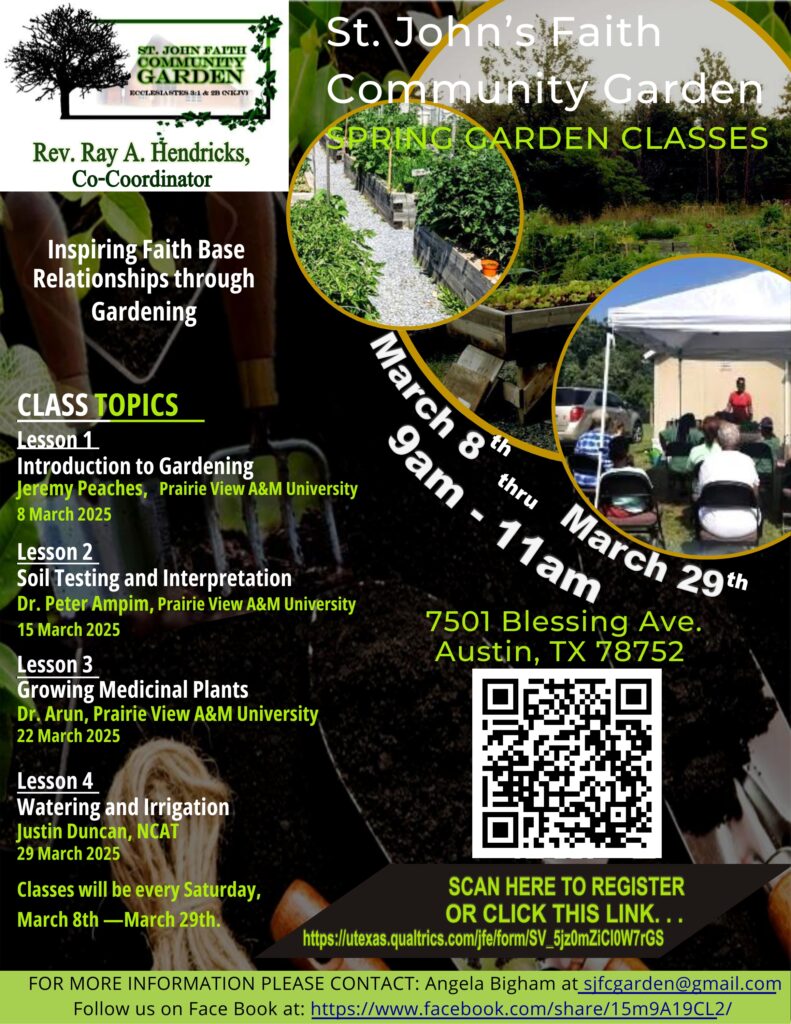 St. John Faith Community Garden is thrilled to announce an exciting new partnership with the Prairie View A&M University for this year’s garden classes! Get ready for expert-led sessions that will elevate your gardening skills and knowledge. Don’t miss out—sign up, attend, and dive into a fun and educational experience while connecting with fellowshipping. Let’s grow together! 🌱