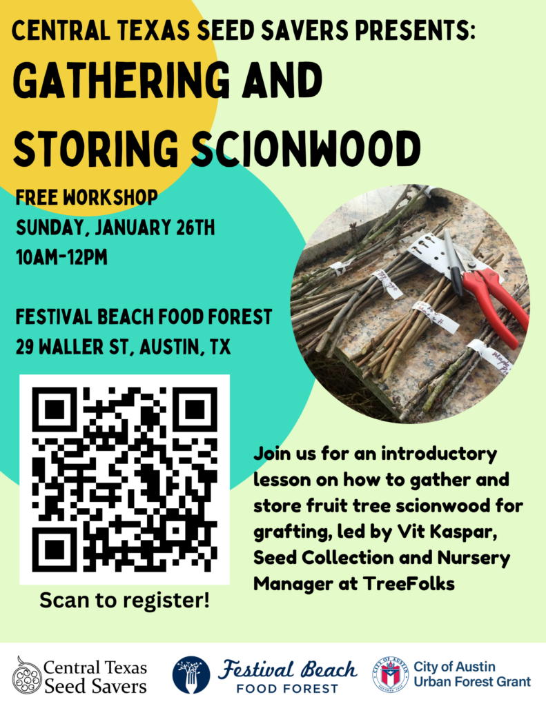 Enhance your fruit tree skills with this free workshop hosted by Central Texas Seed Savers and Vit Kaspar from TreeFolks! Please see below for more information and follow this link to register: Event registration