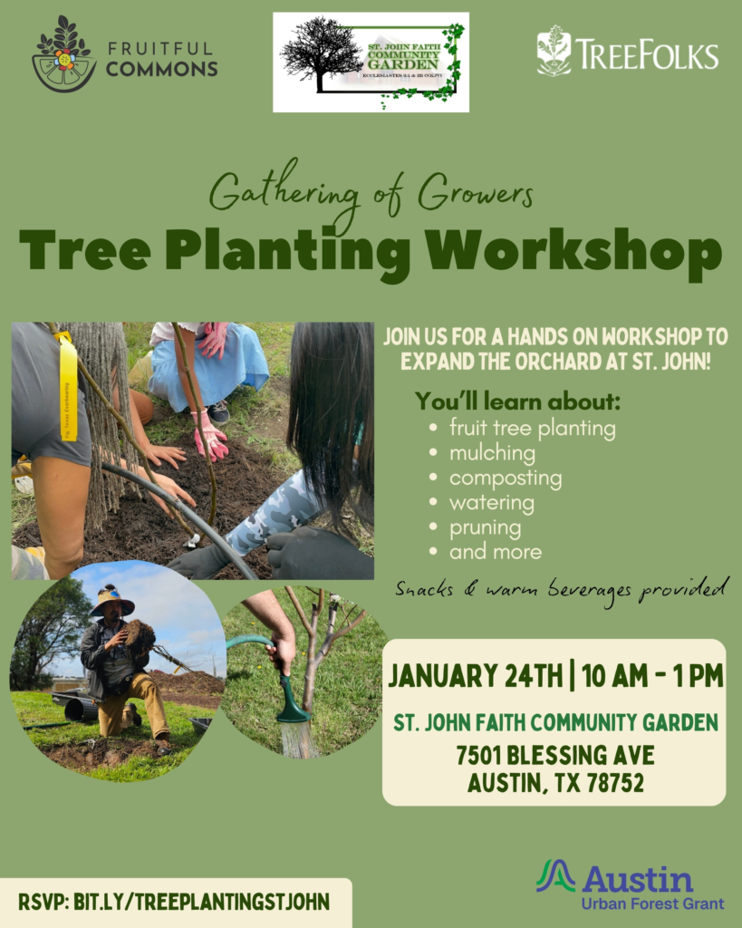 Join us for the first Gathering of Growers of 2026 — a community tree planting workshop at the beautiful St. John Faith Community Garden!