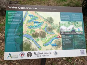 When Festival Beach Food Forest broke ground 10 years ago, it was little more than a field of bermuda grass with just a handful of trees. Through a careful, multi-year design process, they assessed slope and drainage and built berms and swales along the land’s natural contours to slow, spread, and store rainwater. Instead of rushing off into storm drains, water now soaks into the soil, nourishing trees, shrubs, and understory plants.